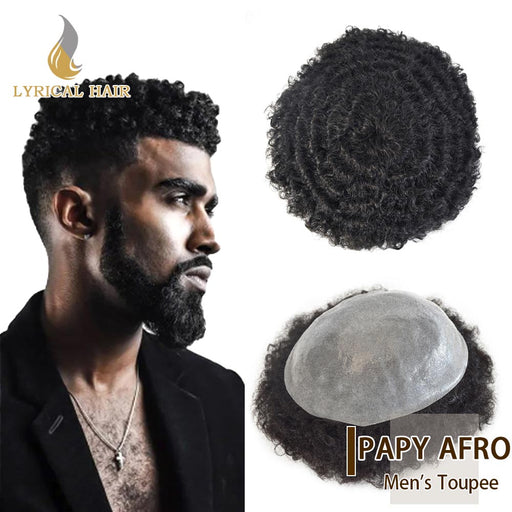 LYRICAL HAIR Kinky Curly Afro Mens Toupee 0.03-0.06mm Thickness PU Hair Unit For Black Men