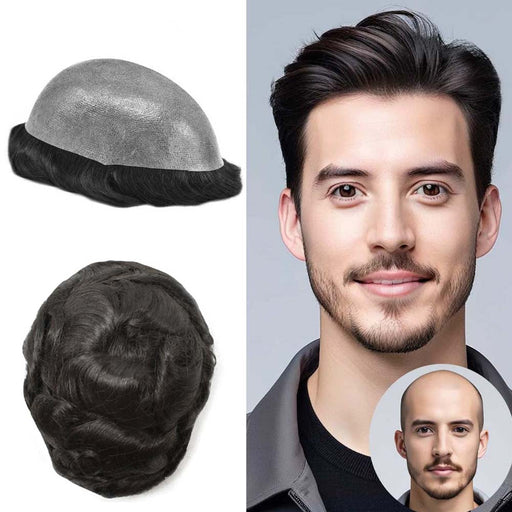 LYRICAL HAIR Mens Toupee 0.06mm Ultra Thin Skin Hair Replacement System for Men V-Looped Knots Mens Hairpieces Natural Hairline Toupee for Men