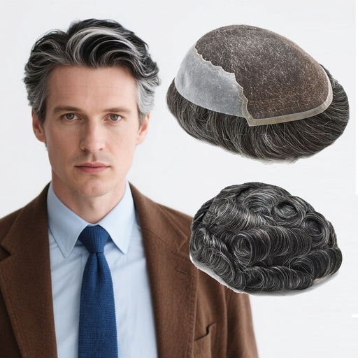 US Stock 0.06mm Ultra Thin Skin Hair System for Men V-Looped Knots Mens Hairpieces Toupee for Men | Black