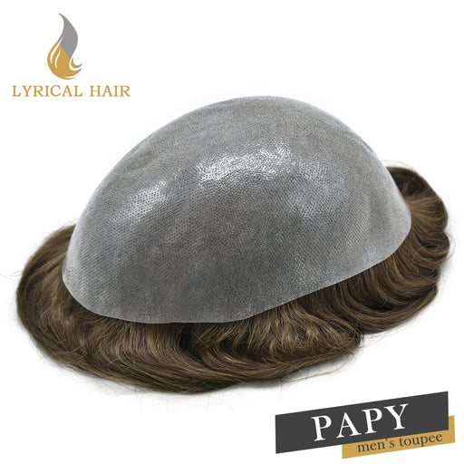 View full detailsLYRICAL HAIR 0.10mm Thickness Durable Skin Knotted PU Brown Human Hair System For Men 100% Hand Tied Woven Toupee for Men | Brown