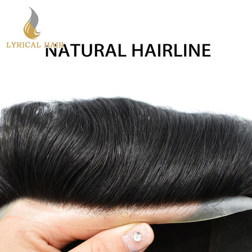 LYRICAL HAIR Pro-Grade 0.06mm Ultra Thin Skin Hair System for Men V-Looped Knots Mens Hairpieces Toupee for Men