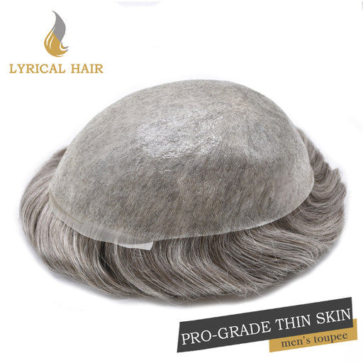 View full detailsLYRICAL HAIR Pro-Grade 0.06mm Ultra Thin Skin Hair System for Men V-Looped Knots Mens Hairpieces Toupee for Men | Gray