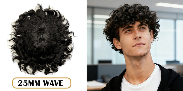 Our men’s hairpiece stock units come with a 32mm slight wave as the standard texture. We also provide 25mm wavy hair units and tighter, more compact curl patterns similar to kinky curly. If you’re not sure which texture is right for you, our team is here to assist—feel free to contact us anytime.